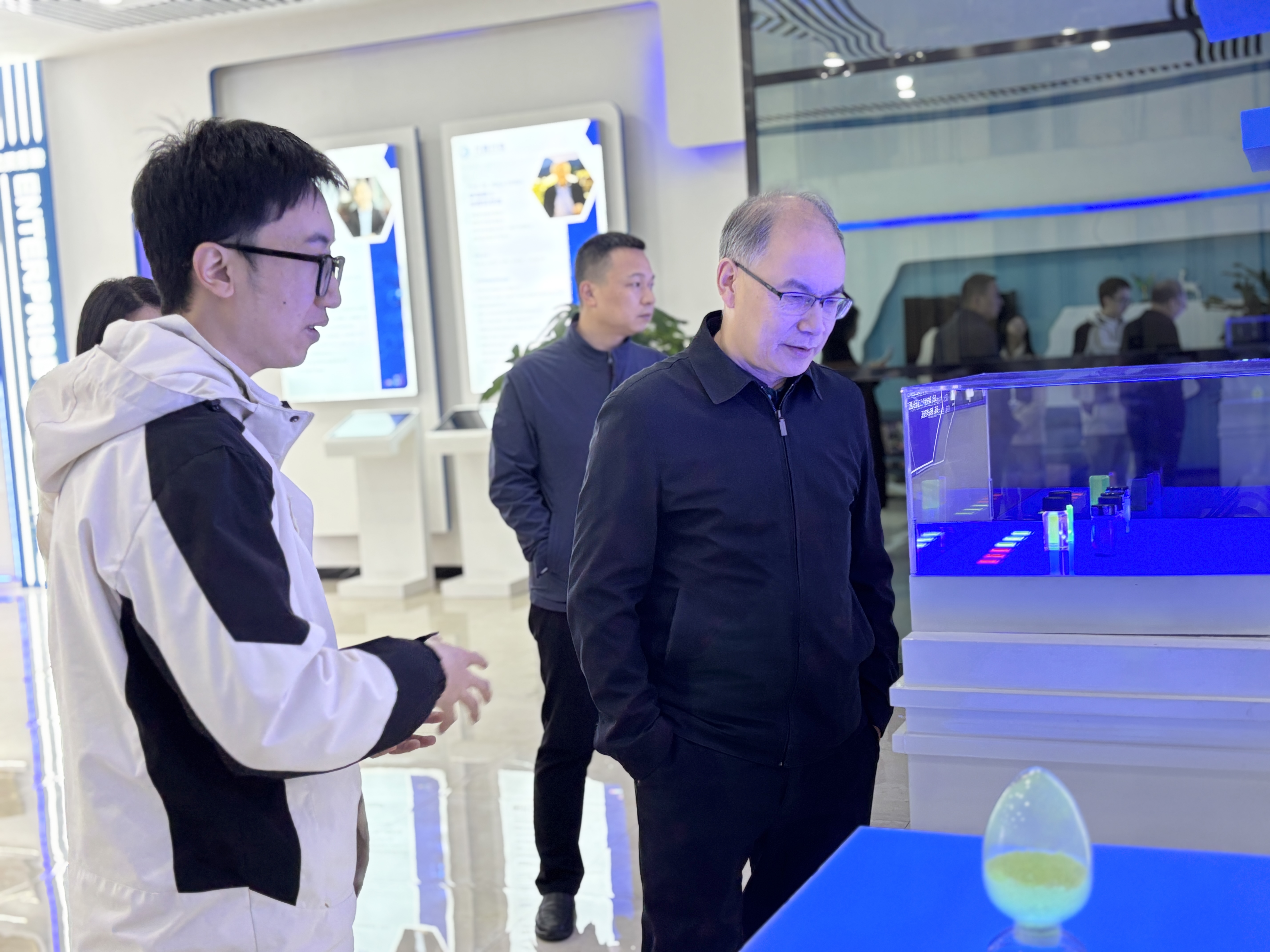 2025年11月18日下午,省经信厅基础设施处处长、一级调研员庞为兴一行来黄调研并莅临浙江光昊光电科技有限公司参观,市经信局党组成员、副局长方崇辉和市、区相关部门领导陪同。